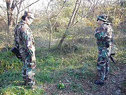 真冬にもかかわらず、お揃いのウッドランドカモでメンバー勢揃い。「ストレートフラッシュ」と口々に叫んでいるが、当時のチーム名。その後、「バーバリアンフォース」と言う凝った名前にしたが、とっさにチーム名を忘れること多々アリで、現在の「ハイパー道楽」でもういいじゃん、とズルズルと変更。