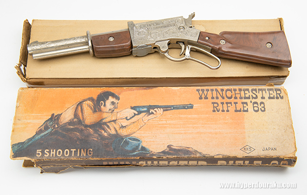 1960年代はアメリカの西部劇が多く日本にも入ってきて上映されたこともあり、空前の西部劇ブームが巻き起こった。拳銃はシングルアクションアーミー、ライフルはウィンチェスターという定番のモデルが玩具化されたが、当時はリアルスケールであることは稀で、こういったミニスケールのダイキャストやブリキ製の玩具銃が国内で製造され海外へ輸出されていた。