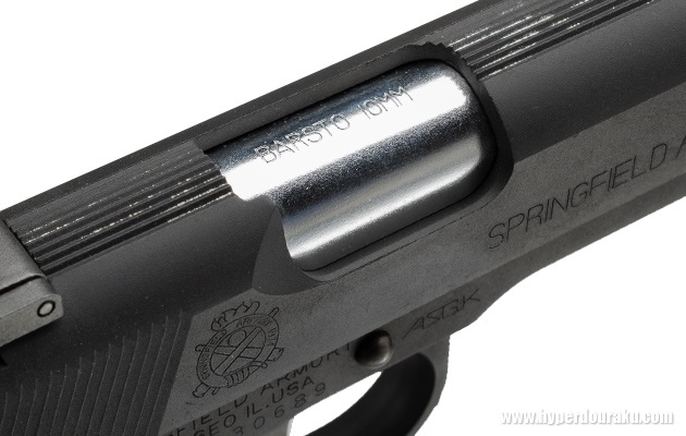 エジェクションポートには実銃のカスタムバレルブランドの刻印を再現し、BARSTO 10MMとある。