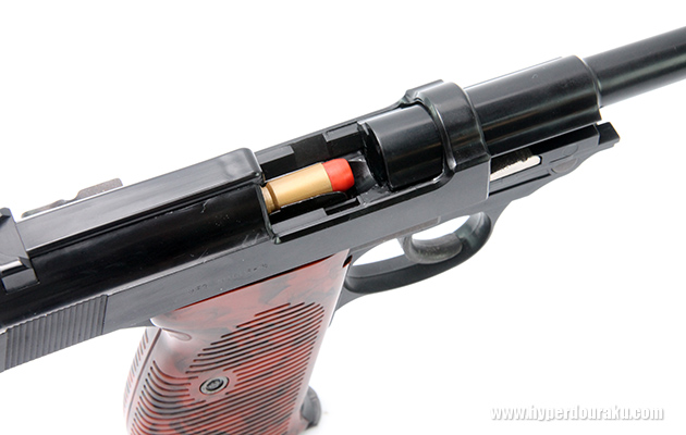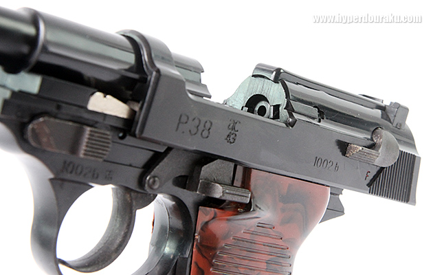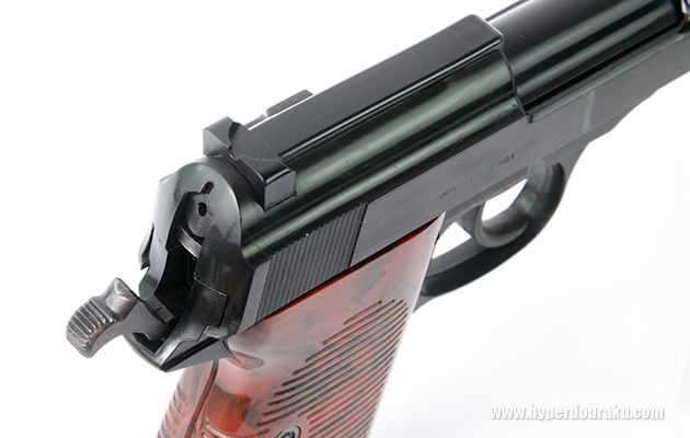 エアコッキングという機構上、スライド後端だけはどうしても実銃通りというわけにはいかないが、他がリアルなだけに若干目立つ。