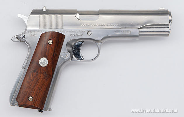 マルゼンは今でこそワルサーとショットガン、競技射撃のイメージが強いが、古くからガバメントをモデルアップしていた先駆者的エアガンメーカーだ。