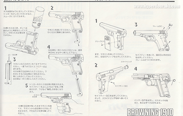 FN ブローニング M1910は本来.32ACP弾(7.62mm)の中型オートだが、.380ACP弾(9mmショート)を使用するバージョンも製造された。信頼性も高く、戦前には日本国内へも輸入され、コルト32オートと共に旧日本軍の将校用のピストルとして使われていた。