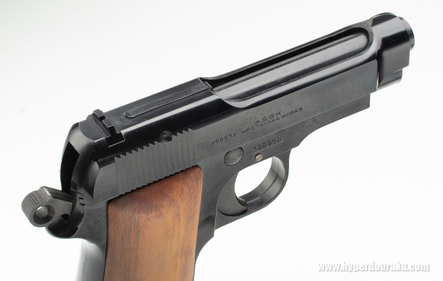 80年代半ばにガスガンが登場し、固定スライドタイプのガスガンが普及すると、各社はよりリアルな作動のガスブローバックガン開発に着手し始める。先陣を切ったのは東京マルイのM-59だったが、その構造はガスの力でスライドを前進させるという現在のガスブローバックとは逆の仕組みだった。